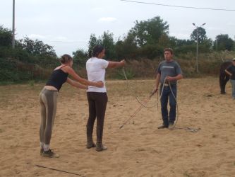 même après deux jours de stage la ratisse est toujours un monstre même si il y a du mieux: Opale sait enfin reculer correctement. Comme quoi le travail à pied est essentiel. Prochainement la suite pour un nouveau stage mais à la maison.